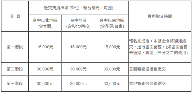 七、參加甄選及發表機構請繳交下列費用,費用標準如下表: